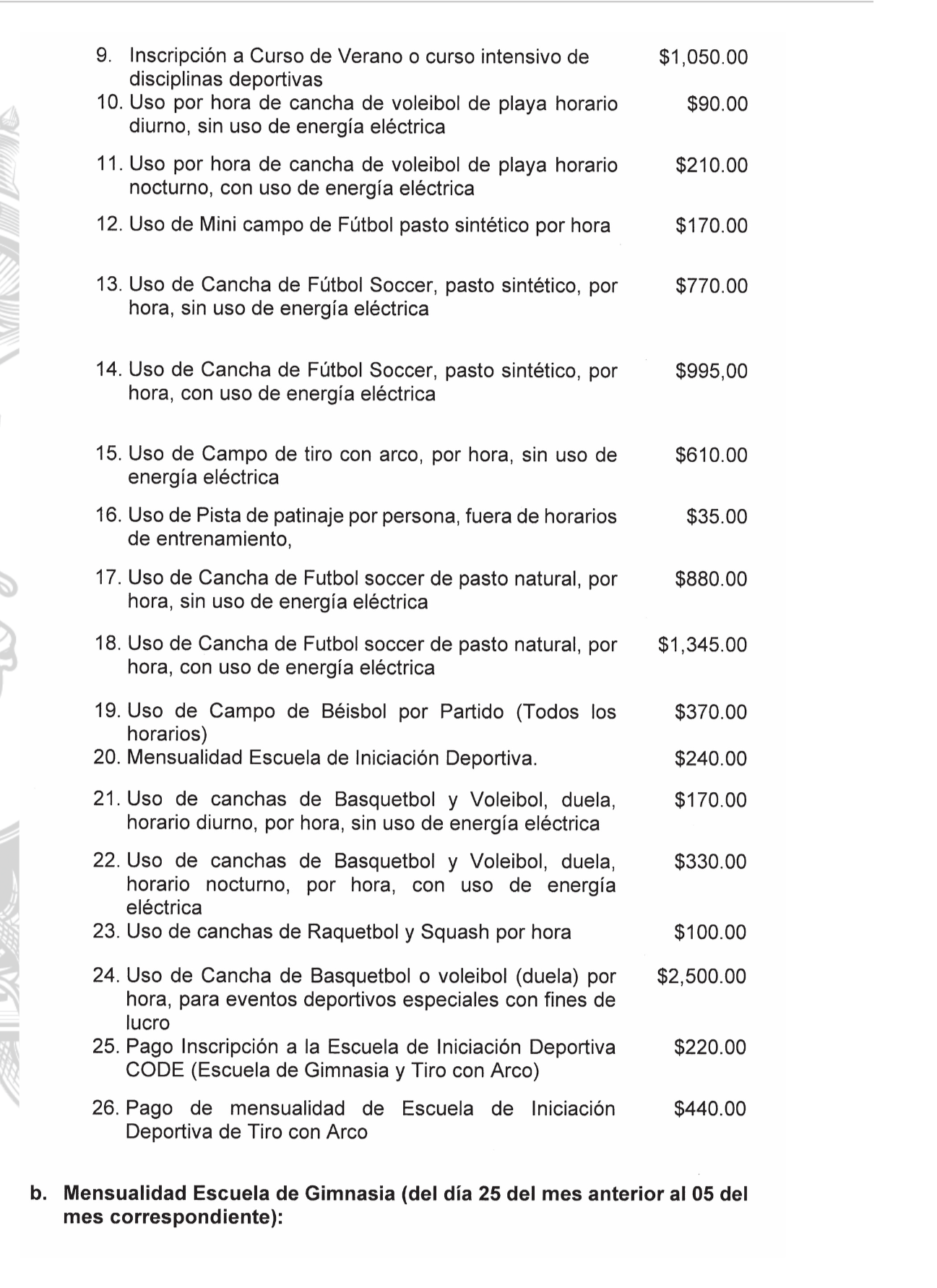 Servicios en Instalaciones Deportivas